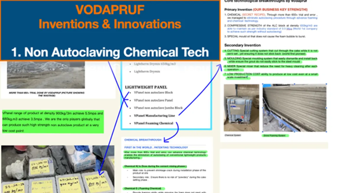With these proprietary innovations, VODAPRUF stands out as a global leader in non-autoclaved, high performance lightweight concrete technology.