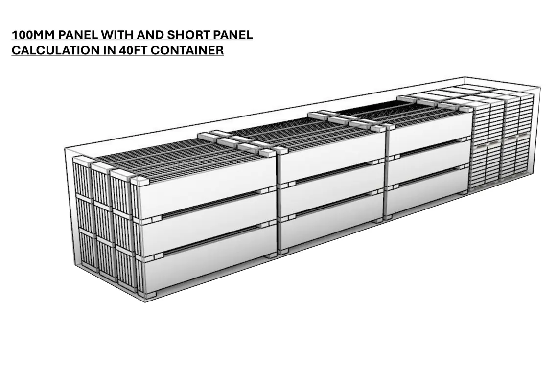 For overseas shipment, VODAPRUF Stacking method allows a total of 436.2 m2 of vPANEL to be sent per 40ft container